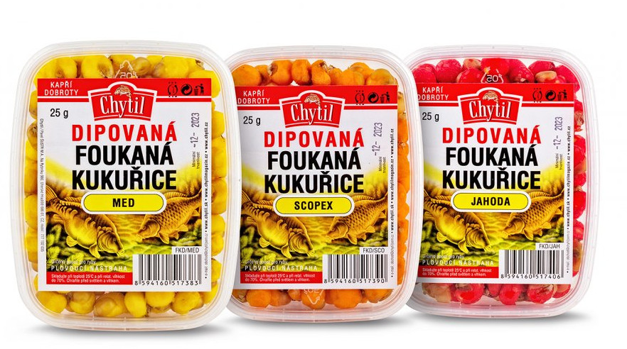 Dipovaná foukaná kukuřice je jedna z nejvíce oblíbených nástrah k lovu kaprovitých ryb.