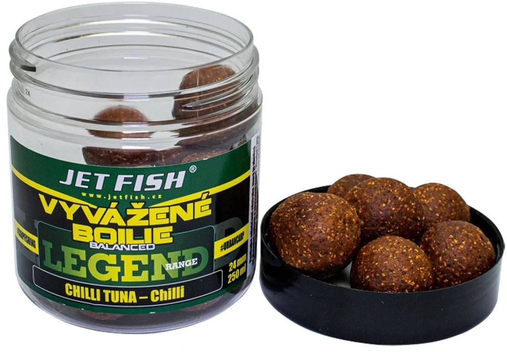 Vyvážené boilies od firmy Jet Fish v produktové řadě Legend Range v příchutí Chilli Tuna, je určené pro chytání opatrných a velkých kaprů.
