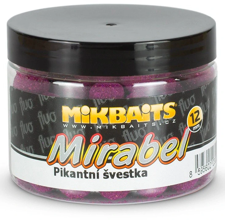 MIKBAITS Mirabel Fluo boilie Pikantní švestka 150ml 12mmSkladem150 Kč/ ks134 Kč bez DPH