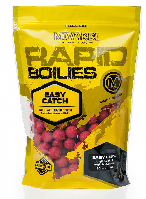 Boilie Rapid Easy Catch Anglická jahoda má aromaticky, barevně i chuťově výrazné boilies s přirozeně působícím jahodovým aroma. Přináší záběry velmi rychle a bez předchozího masivního vnadění. Lze jej použít celoročně. Vyvážený mix z extrudovaných složek a ptačích zobů zajišťuje dobrou práci i ve studené vodě.