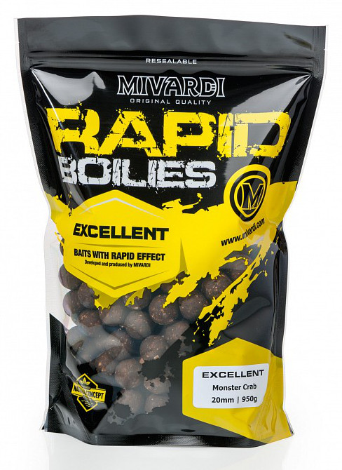 Boilies Mivardi Rapid Excellent Monster Crab je univerzálně použitelná řada boilies s rychlejším nástupem. Kořeněná i rybí varianta.