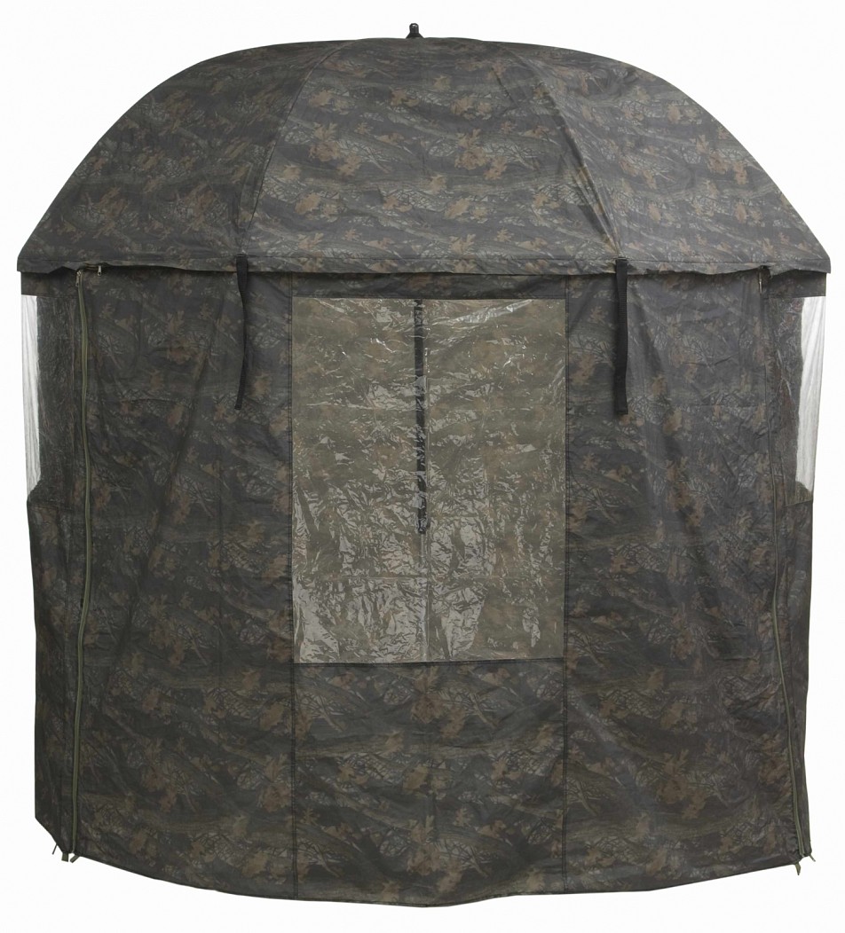 Nejkvalitnější deštník s bočnicí a odnímatelnou přední stěnou Mivardi kompletně zakrytý PVC Camou 250cm, který je vyroben z kvalitního 100% nepropustného "pogumovaného" materiálu s lepenými švy v kamuflážovém provedení.