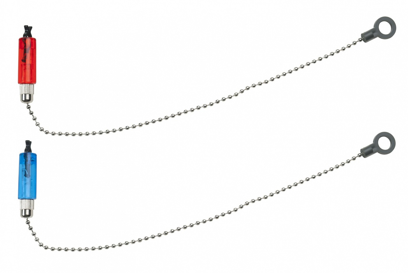 Sada jednoduchých řetízkových signalizátorů záběru s nastavitelným klipem z odolného plastu. Do těla signalizátoru lze vložit chemické světélko.