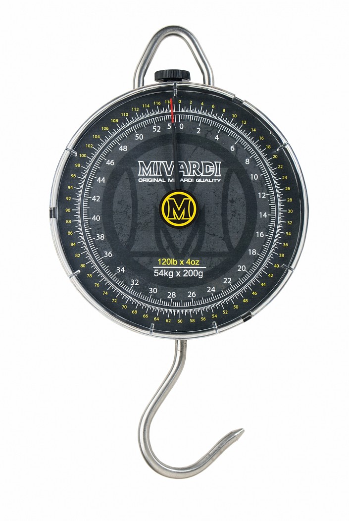 Analogová váha Mivardi Hardcore 54kg nabízí velice přehledný ciferník, který je vybaven stupnicí v kilogramech a v librách.