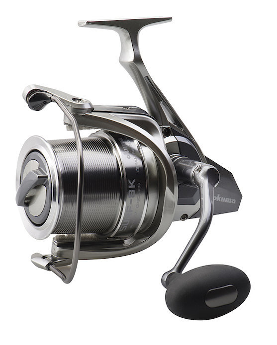 Kaprový velkokapacotní naviják Okuma Surf 8k má své patentové prvky, jako je rotorová brzdová soustava, rotor s kryty kartáčů, antireverzní systém, ale také upgrady všech funkcí a částí. Surf 8K je dodáván s převody s šnekovým hřídelem a systém velmi pomalé oscilace. Kuželová cívka je ideální pro dlouhé náhozy na velkých vodách.