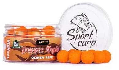 Plovoucí boilies Sportcarp Pepper Squid - oliheň pepř. Jedná se o kvalitní kombinaci kvalitních olihňových doplňků a síly účinnosti černého pepře.