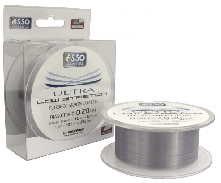 Vlasce Asso Ultra Low Stretch má povrchovou úpravu z fluorocarbonu a díky tomu je téměř průhledný, má velkou výdrž vůči přetrhnutí v tahu a výborný výkon díky novým copolymerům.