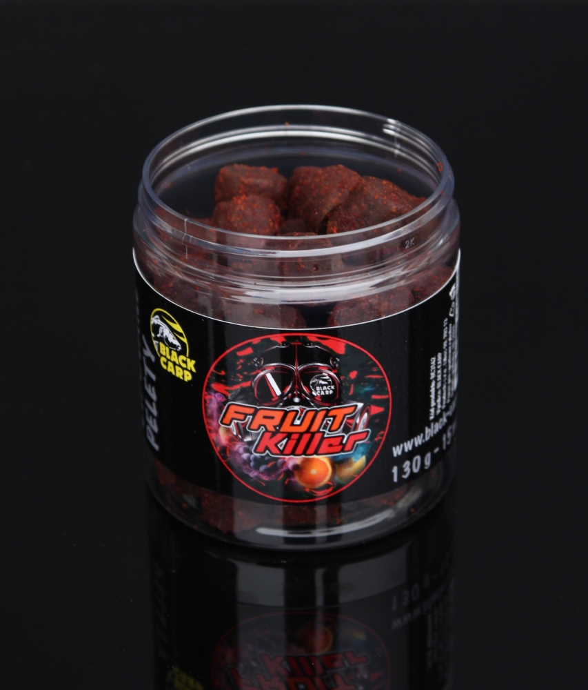 Dipované pelety Black Carp Fruit Killer ve velikosti 15mm DIPOVANÉ PELETY BLACK CARP FRUIT KILLER  Ideální nástraha pro zaujetí netečných ryb. Pelety jsou dlouhodobě dipovány v liquidu s přidáním velkého množství atraktorů. Tato nástraha je doslova atračkní bombou mezi ostatním krmením na dně! celý popis