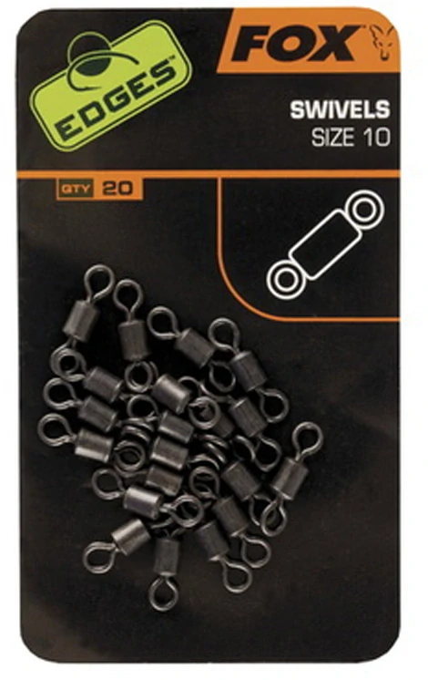 Kvalitní obratlíky FOX Edges Swivel s matnou povrchovou úpravou. K dispozici jsou dvě velikosti, které přesně sednou do jednotlivých závěsek od firmy Fox.