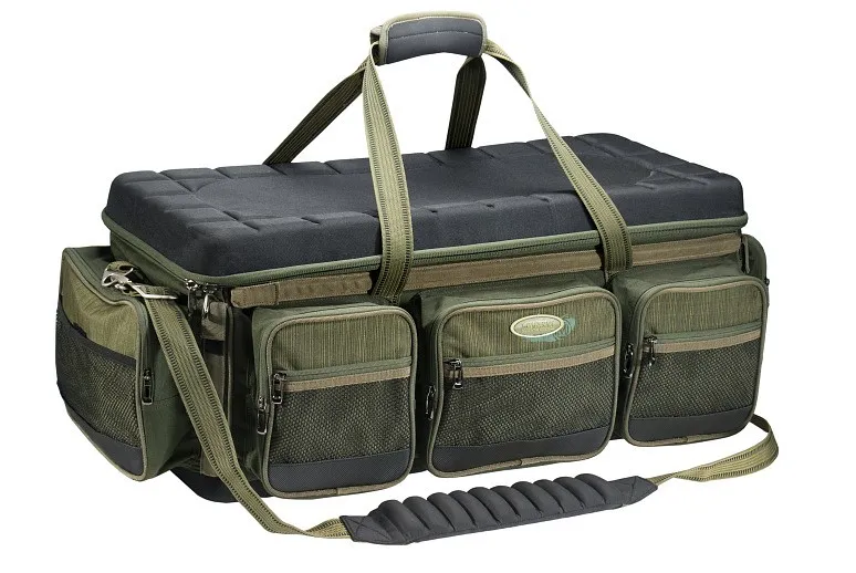 Největší kaprařská taška Mivardi New Dynasty XXL má vyztužené dno i stěny, masivní víko dobře poslouží jako stolek. Hlavní komora rozdělená dvěma pepážkami, které lze oddělit a tím vznikne jeden velký prostor na veškeré vybavení.