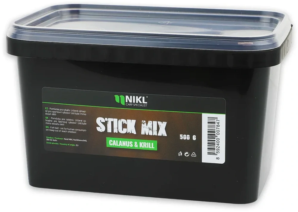 Nikl Stick Mix Calanus & Krill je navržený pro rybáře, kteří potřebují dosáhnout rychlého záběru v jakýchkoliv podmínkách – při krátkodobém lovu, závodech i aktivním chytání. Jeho složení reaguje okamžitě po rozpuštění PVA materiálu a vytváří kolem nástrahy silně atraktivní zónu s výrazným korýším profilem. Kombinace Calanus a krillu vytváří čitelné potravní impulsy, které dokážou přilákat ryby během několika málo minut.