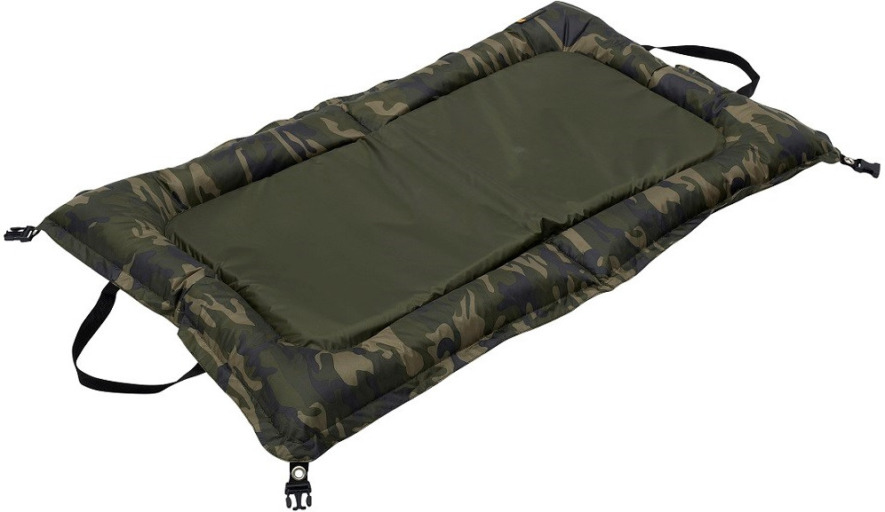 Bohatě polstrovaná pěnová matrace PROLOGIC Avenger Foam Beanie Medium v kombinaci s vyvýšeným camo okrajem, který je vyplněný polystyrenovými kuličkami.