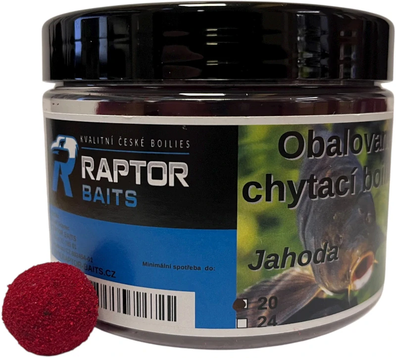 RAPTOR BAITS Obalované chytací boilies Jahoda 250g 20mm